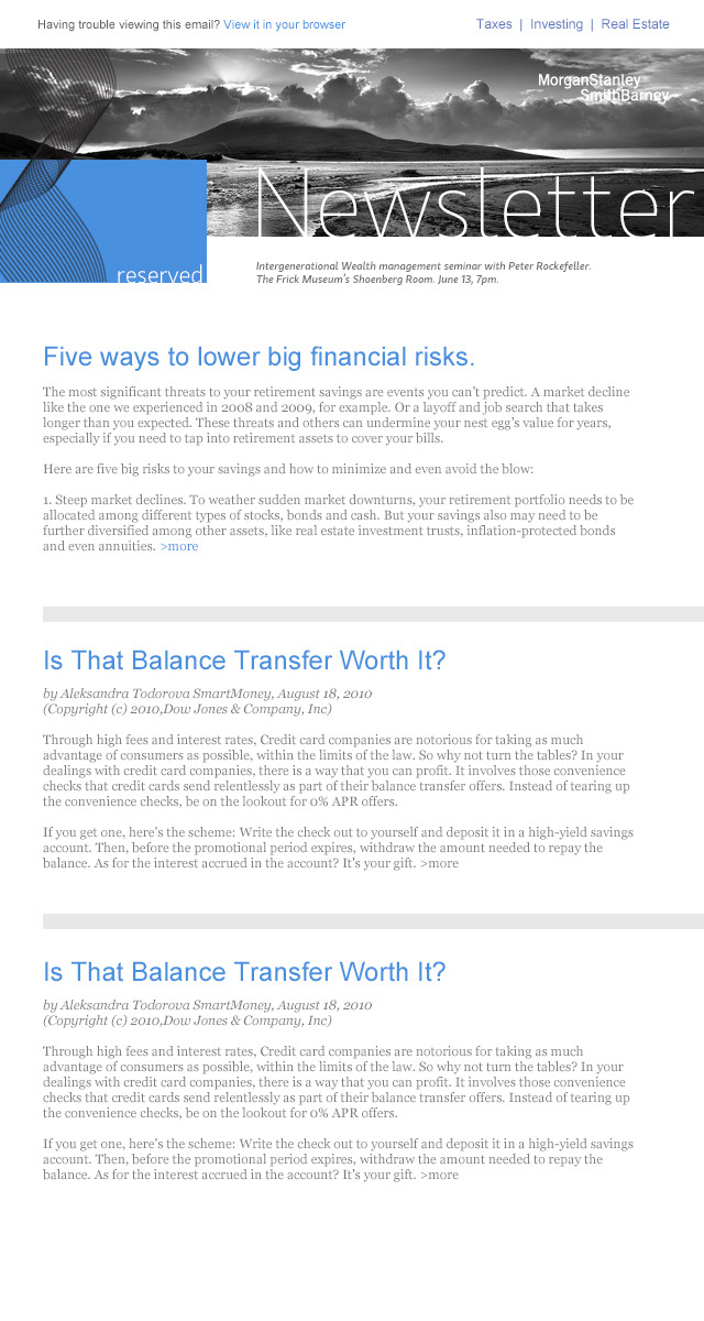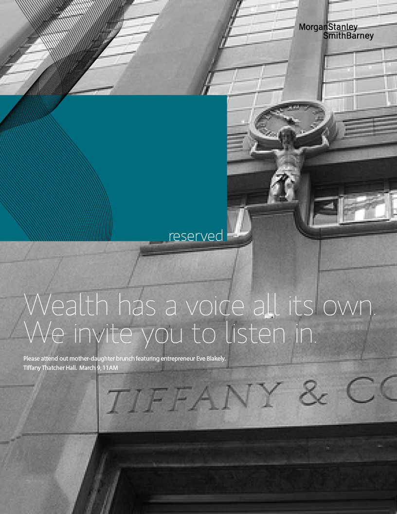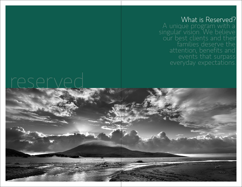 Re-Branding project for Reserved. Morgan Stanley's High Net worth Individual Investors Program. Design work included Logo,Welcome Kits, Ads, eNewsletters and email.