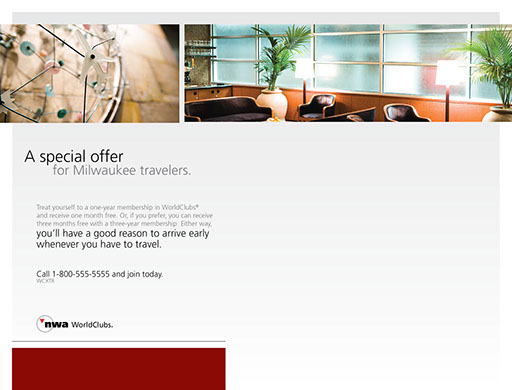NWA World Clubs Brochure // We created this brochure for non World club members to increase memberships in WorldClubs and included an offer of up to 3 months free. Printed vellum end sheets of art glass. Size 10.5x8 inches.